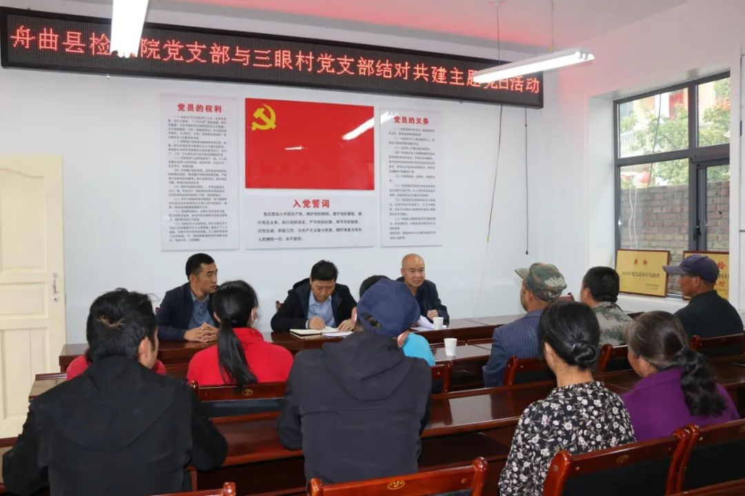 在城关镇坝里村、三眼村党群服务中心,村“两委”班子成员、党员群众代表、检察干警共同学习了习近平总书记视察甘肃重要讲话和指示精神、习近平总书记在全面推动黄河流域生态保护和高质量发展座谈会上的重要讲话精神。舟曲县检察院副检察长、三眼村支部兼职书记韩君同志以“以党的光辉为引领,共绘新时代发展华章”为题,为全体党员上了一堂生动活泼的党课。