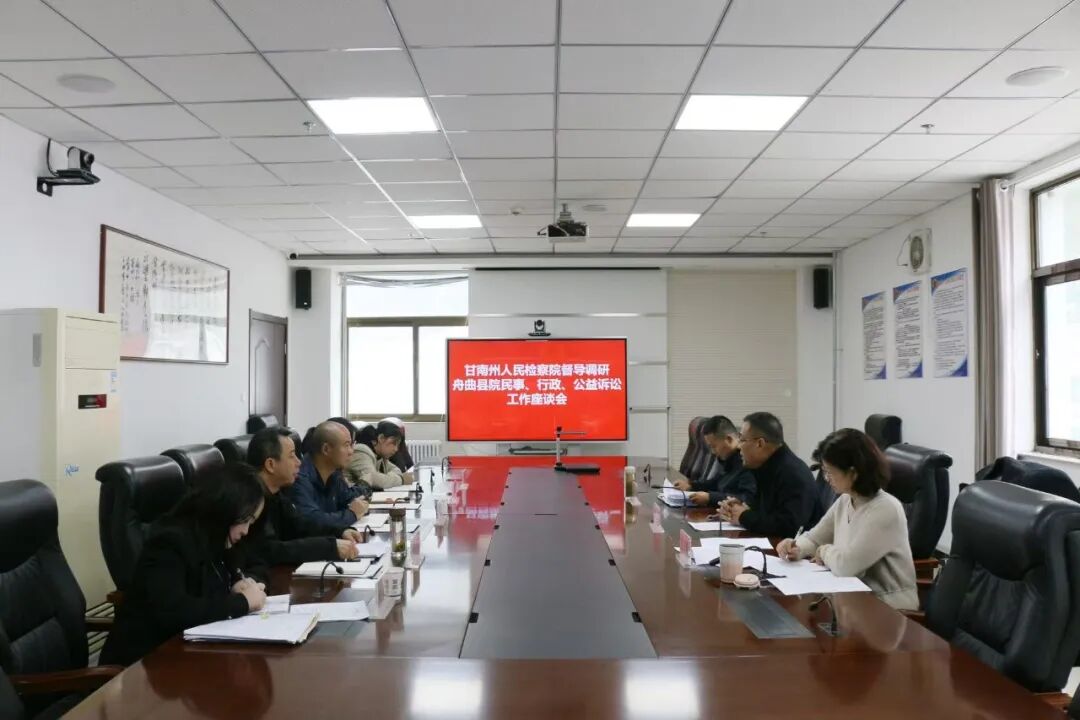 10月22日,甘南州人民检察院党组成员、副检察长贡保加布一行到舟曲县检察院督导调研民事、行政及公益诉讼检察工作并召开座谈会。院党组成员、副检察长韩君、检委会专职委员洪小平及第二检察部全体干警参加座谈会。
